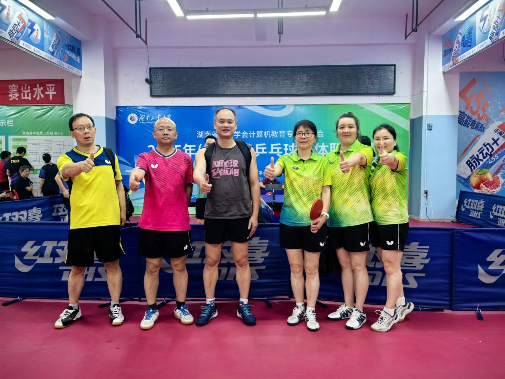 本网讯(信科学院罗帅)2025年7月4日,在2025年湖南省高教学会计算机教育专委会组织的第七届乒乓球团体联谊赛中,我院教职工代表队由谭泗桥、黄正军、许建开、曹晖、罗帅和张香芽等6位老师参赛,表现出色,最终荣获乙组季军。此次赛事为男女混合团体赛,涵盖男单、女单、男女混双打三个项目,本届比赛无论是比赛规模还是参赛高校、比赛水平都创历史新高,省内29所高校,省外联队4所高校(北京大学、南京大学、上海大学、四川大学)共计33所高校180余名选手展开了激烈角逐,比赛扣人心弦、紧张激烈。