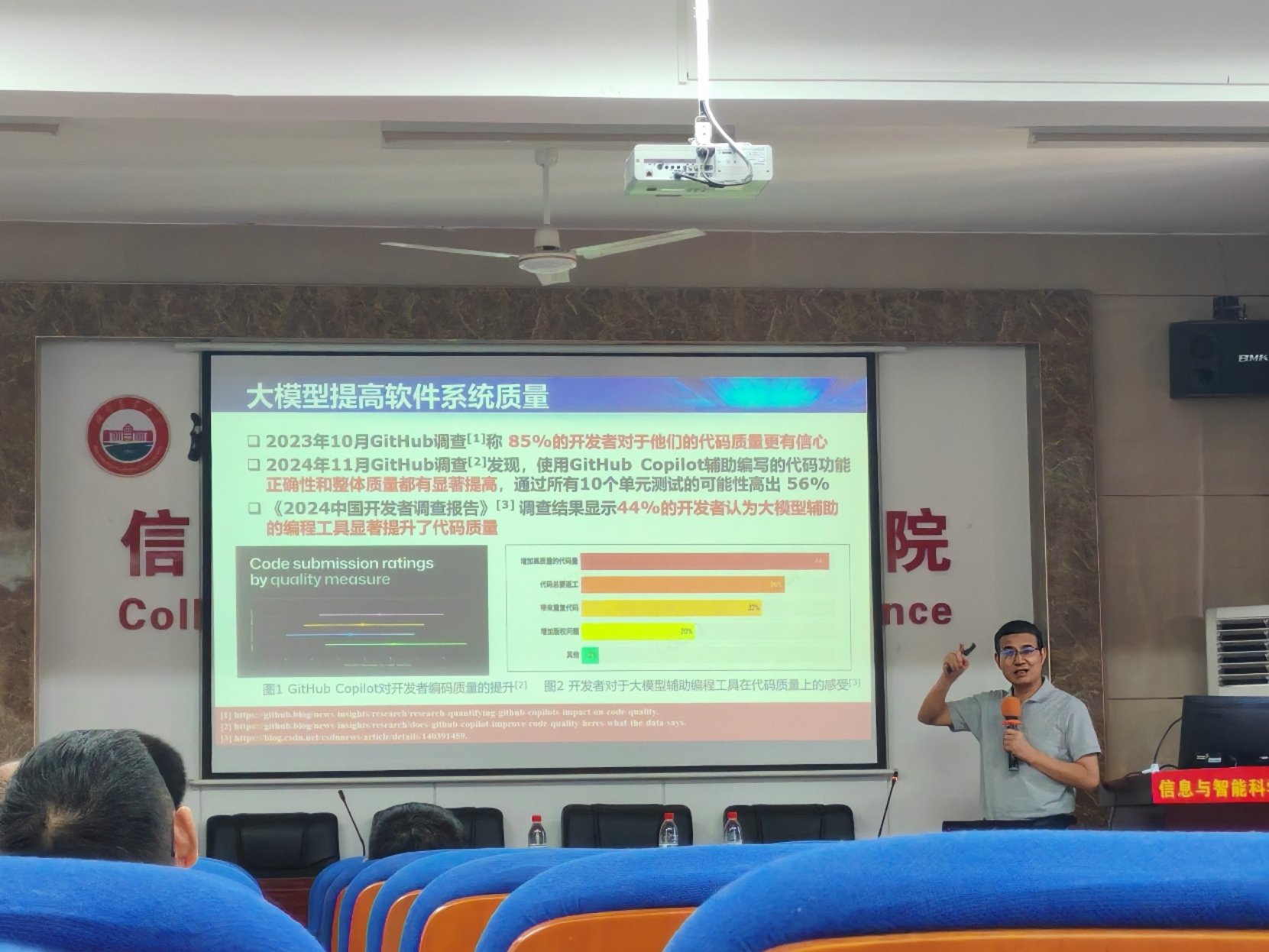 毛新军教授作《智能和开源时代的计算机教育》主题报告。他深入分析智能与开源时代特点,阐述大模型等人工智能技术和开源软件对计算机教育的影响。从知识、能力、素质维度,探讨新时代计算机人才培养的机遇与挑战,还围绕课程设置、知识体系、实践体系、教学方法、支撑生态等方面给出专业建设建议,同时分享了国防科技大学基于开源、群智和智能辅助的教学改革经验,为师生带来前沿视角。